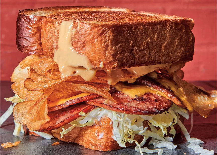 But since 2016, another New Orleans sandwich has been attracting much well-deserved attention. It’s The Bologna from the restaurant and cookbook called Turkey and the Wolf. Its founder Mason Hereford is very invested in making food that just tastes damn good, and he’s not afraid to turn to junk food and over-the-top combos to make it happen. Which makes New Orleans the perfect place for his sandwich shop.